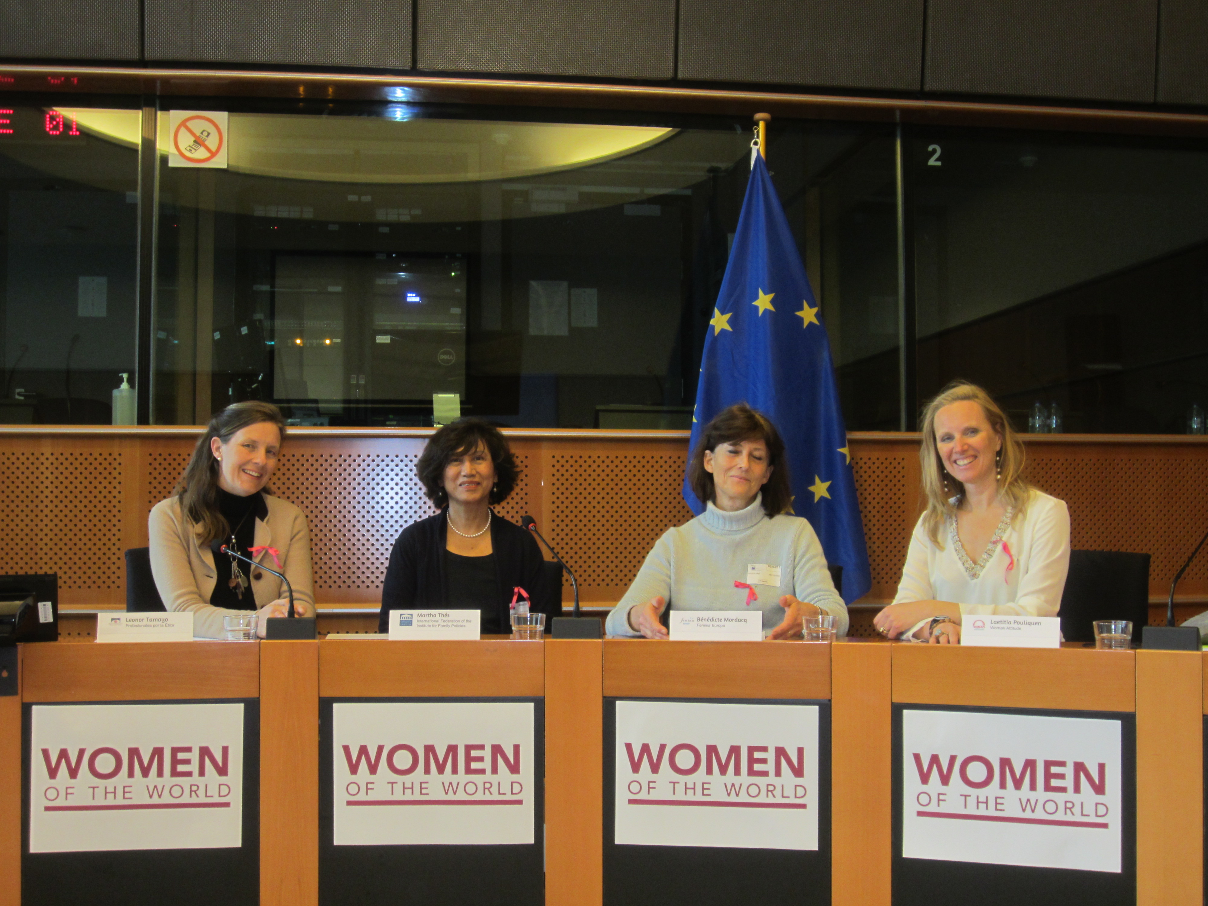 The Brussels presentation was performed by Leonor Tamayo, president of Profesionales por la Ética, Martha Thés representing the International Federation of the Institute for Family Policies (IPF), Bénédicte Mordacq, as speaker of Femina Europa and Laetitia Pouliquen, on behalf of Woman Attitude.